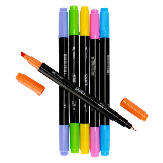6 Canetas de Feltro Bic Intensity Ponta Dupla Pastel