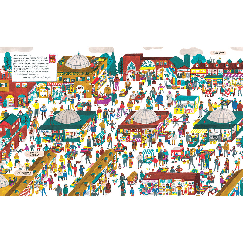 Um livro de grande formato tipo “descobre onde está” , para aprender mais sobre as grandes cidades do mundo e os instrumentos musicais.