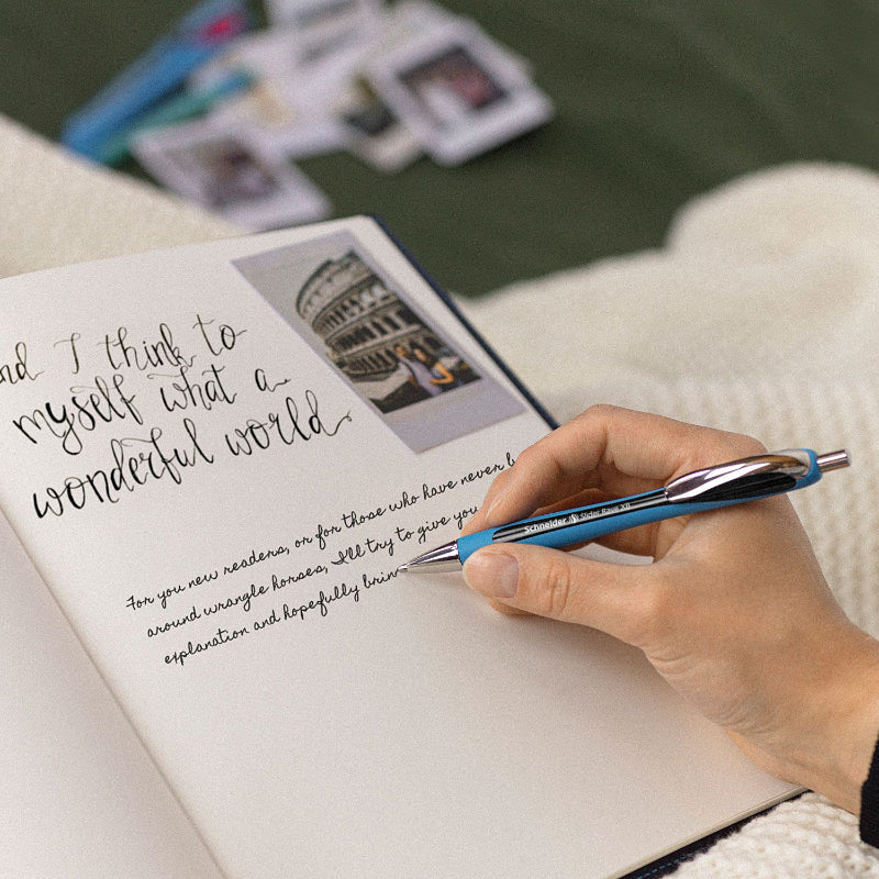 Caneta esferográfica com tecnologia Viscoglide® para uma escrita extraordinariamente suave e deslizante. Corpo amigo do ambiente e economizador de recursos — feito com 68% de plástico reciclado. Equipada com recarga gigante substituível Slider 755 XB (extra largo) com ponta em aço inoxidável resistente ao desgaste. Isto garante que a grande reserva de tinta pode ser utilizada por completo e não mancha. A tinta seca rapidamente — mesmo em papel liso — e não borra quando se utiliza um marca-texto posteriormente. O corpo, ergonomicamente moldado e amplamente emborrachado, promove uma escrita descansada e sem fadiga. Possui um clipe metálico robusto e, graças ao inteligente sistema Plug+Play, pode usar diferentes formatos de recarga.