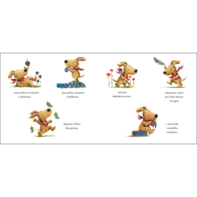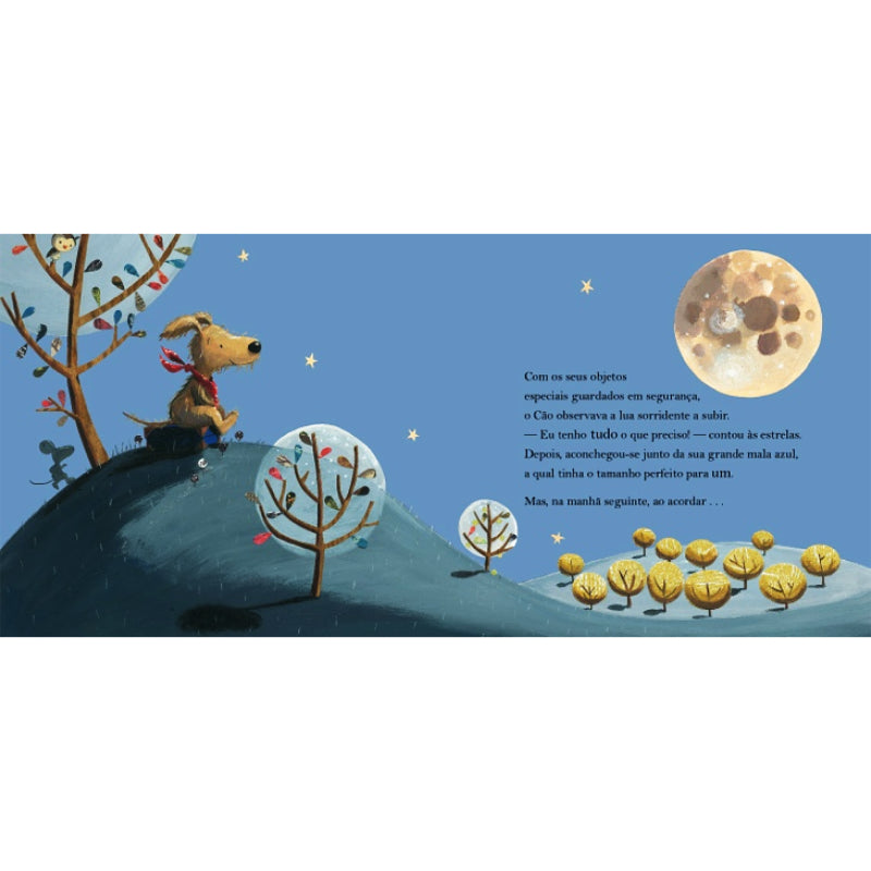 O Cão acredita que tem tudo aquilo que precisa dentro da sua grande mala azul. É perfeita para todos os pequenos tesouros que coleciona e o Cão está certo de que não precisa de mais nada para ser feliz.