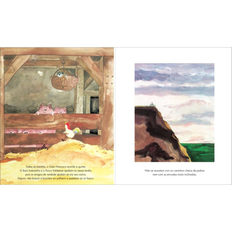 No mundo, há muitas quintas, mas nenhuma é igual a esta. Aqui vivem três amigos improváveis e inseparáveis: um galo, um rato e um porco. Mal acordam, cada um sobe para o seu lugar na bicicleta e partem os três em busca de novas aventuras!